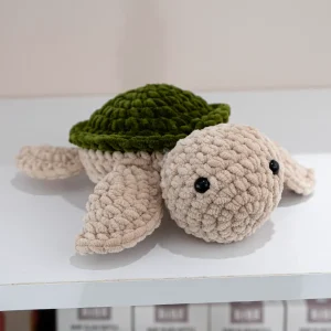Fluffy Zebra. Πλεκτή βελουτέ Θαλάσσια Χελώνα – Μπεζ/Λαδί