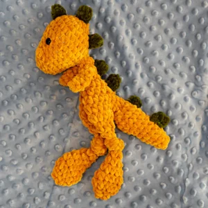 Fluffy Zebra. Πλεκτό βελουτέ δεινοσαυράκι/νάνι – Μουσταρδί