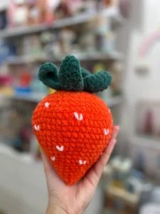 Fluffy Zebra. Πλεκτή βελουτέ φράουλα