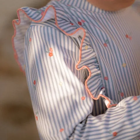Αυτό το μακρυμάνικο μπλουζάκι είναι ιδανικό για ατελείωτες περιπέτειες στην παραλία. Φτιαγμένο από απαλό, ελαστικό ύφασμα, εξασφαλίζει άνεση και ελευθερία κίνησης όλη μέρα. Τα εύχρηστα κουμπάκια διευκολύνουν το ντύσιμο, ακόμα και όταν το μικρό σας είναι βρεγμένο.