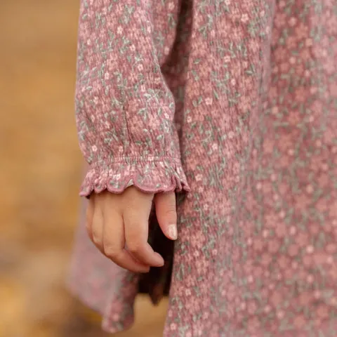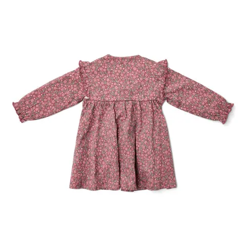 Κατασκευασμένο από εξαιρετικά απαλό οργανικό βαμβάκι, αυτό το φόρεμα προσφέρει άνεση σε κάθε κίνηση! Το πλούσιο φλοράλ μοτίβο χαρίζει χαρά με την πρώτη ματιά, ενώ τα χαριτωμένα βολάν στους ώμους προσθέτουν κομψότητα και παιχνιδιάρικη διάθεση.