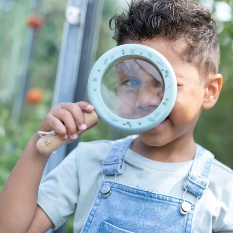 Ο ανθεκτικός ξύλινος σκελετός και η εύχρηστη λαβή εξασφαλίζουν άνετο κράτημα, ενώ τα όμορφα χρώματα και σχέδια εμπνευσμένα από τη συλλογή Forest Friends προσθέτουν μια παιχνιδιάρικη αίσθηση. Ο φακός διαθέτει ενσωματωμένο πολύ μικρό φακό για ακόμα πιο λεπτομερή παρατήρηση.