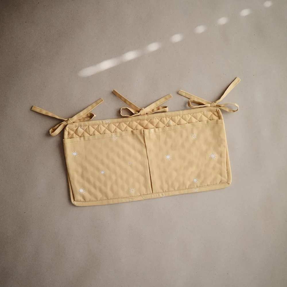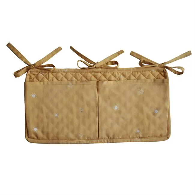 Η κομψή και πολυλειτουργική θήκη κούνιας από 100% βαμβάκι είναι συμβατή με τις περισσότερες κούνιες. Θα σας βοηθήσει να οργανώσετε τα απαραίτητα είδη του μωρού όπως πάνες, μαντηλάκια, μασητικά και παιχνίδια. Μπορείτε εύκολα να στερεώσετε τη θήκη στις μπάρες της κούνιας, στα κάγκελα ή στα ράφια με τα 3 σετ από δεμένες κορδέλες.